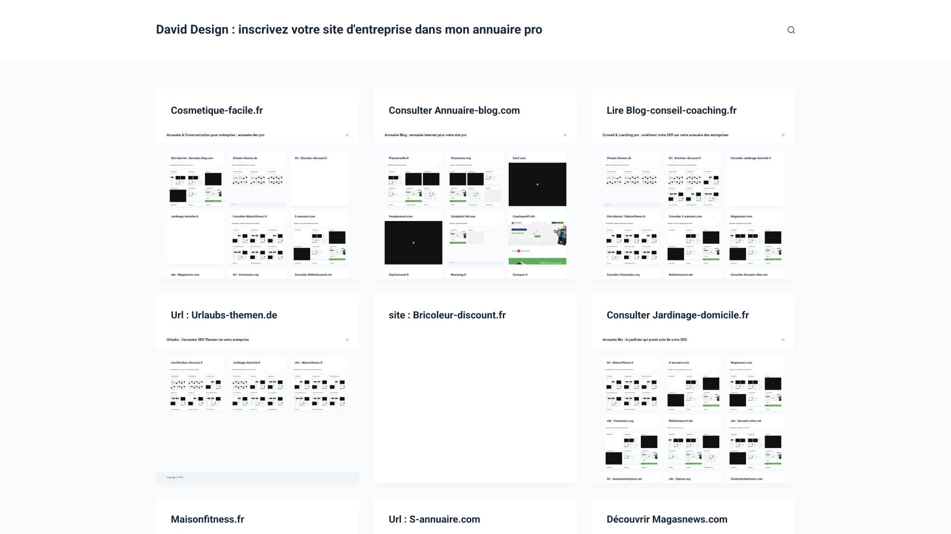David Scott Design vous invite à inscrire votre site d’entreprise dans un annuaire pro innovant, conçu pour booster votre visibilité et fidéliser une clientèle exigeante. Mêlant design créatif et expertise en référencement, ce service performant vous permet de mettre en avant votre entreprise tout en profitant d’outils optimisés pour le marketing digital. Vous bénéficiez ainsi d’une plateforme sur-mesure qui dynamise votre image de marque et améliore votre positionnement en ligne.